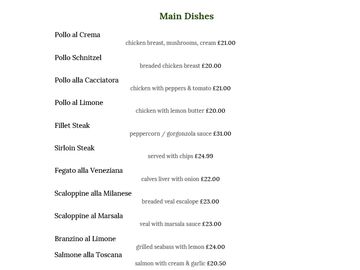 Beautifully prepared Italian mains designed to be the highlight of your dining experience.