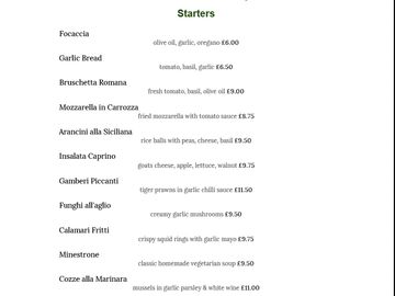 All dishes are prepared fresh daily. Please inform us of any allergies or dietary requirements.